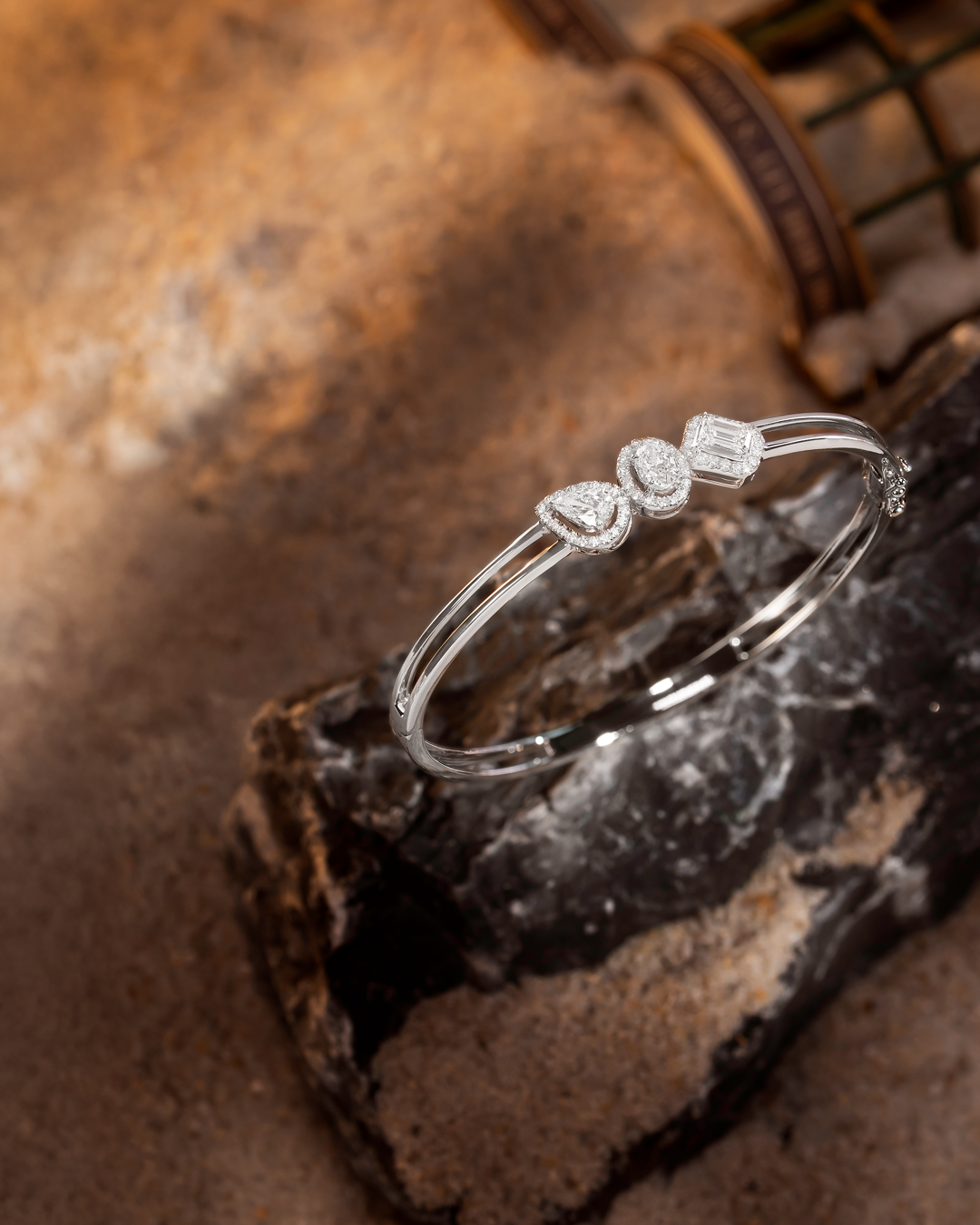 Gelang trilogy penuh makna, past, present & future. Tersedia dalam beberapa pilihan bantuk berlian mulai dari 0.30 carat.
