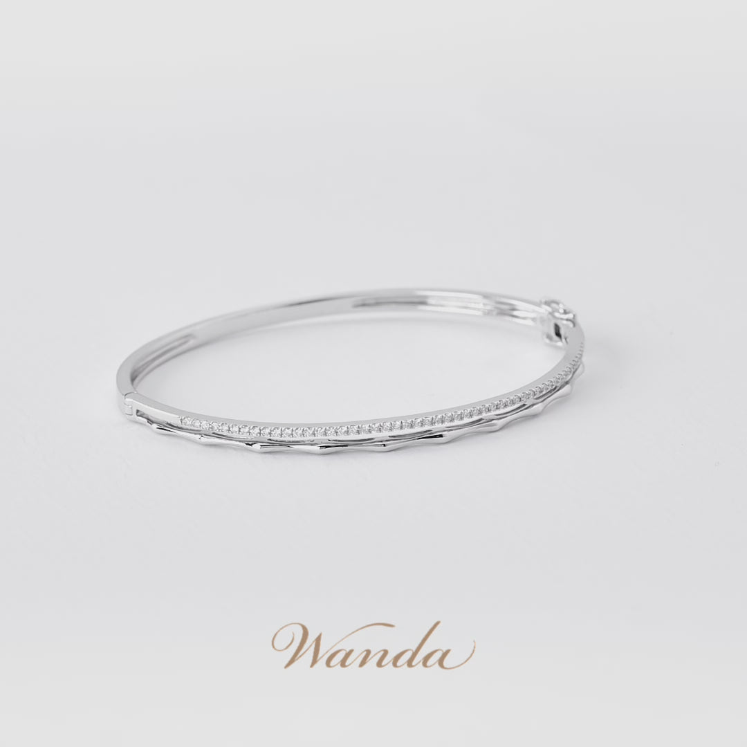 Gelang bangle emas 18K dengan desain klasik yang elegan dan tak lekang waktu. Dihiasi round cut diamond dan colorless diamond micro setting, gelang ini memancarkan kilau halus yang mewah namun tetap nyaman untuk dikenakan sehari-hari. Perpaduan desain minimalis dan detail berlian menghadirkan nuansa modern yang effortless dan berkelas.