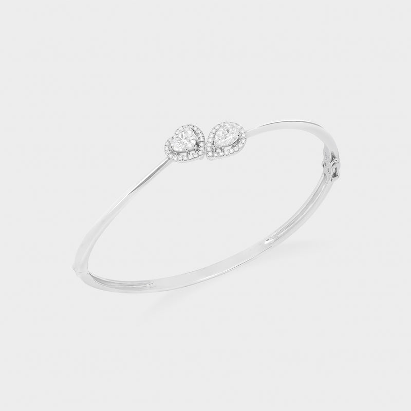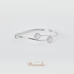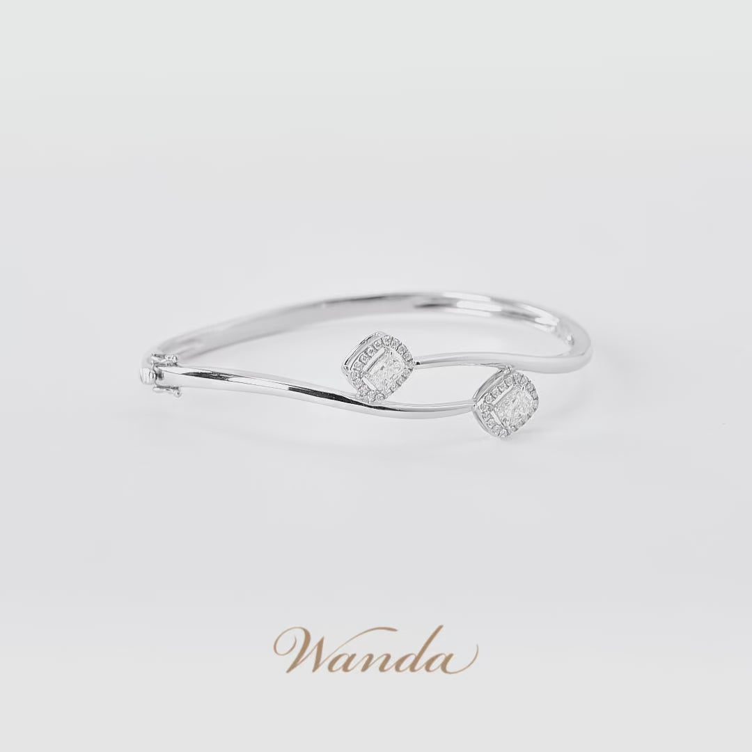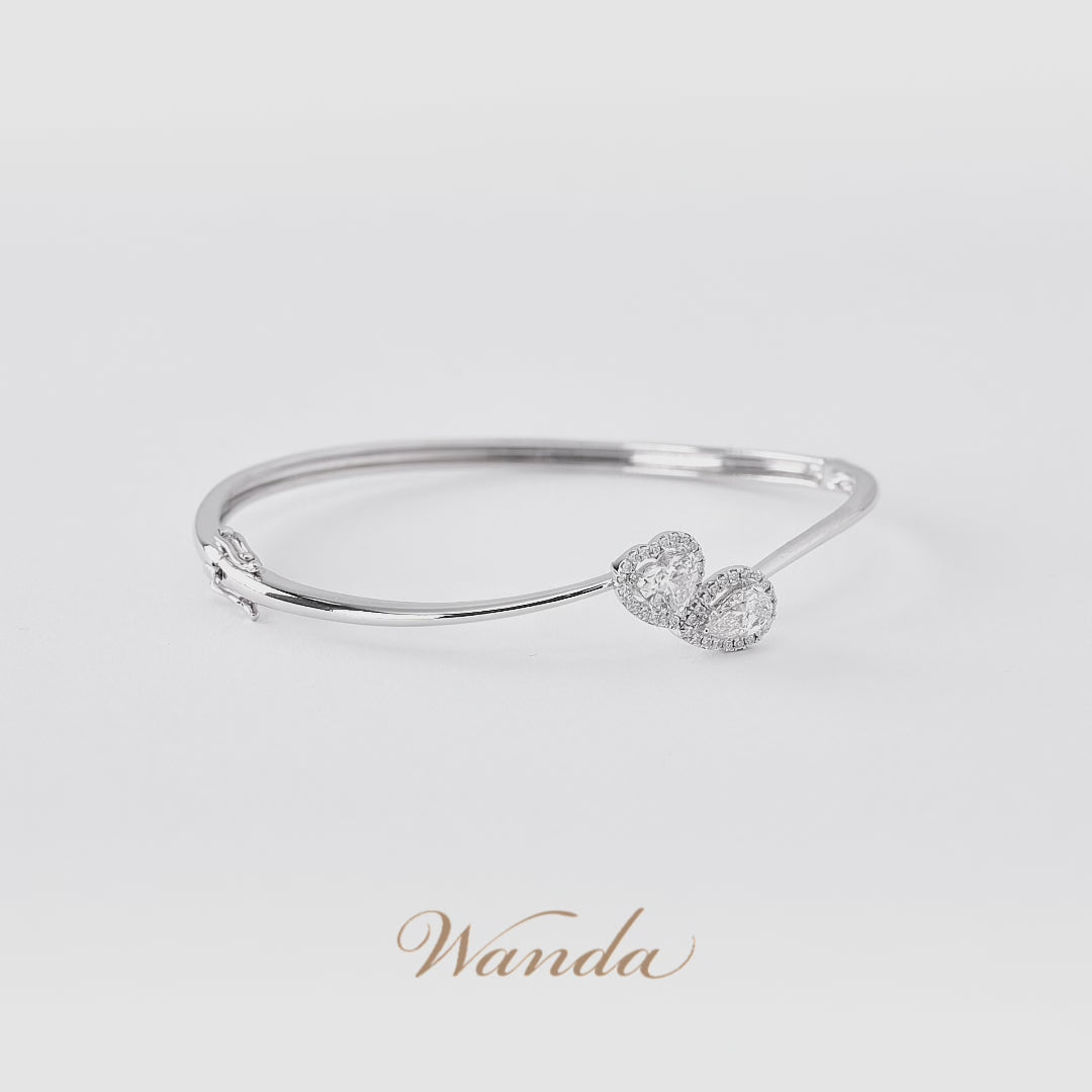 Gelang emas 18K ini menampilkan desain duo solitaire berlian natural D Color & VVS Clarity (colorless diamond), tersedia dalam dua varian memikat: kombinasi heart 0.40 carat & pear 0.30 carat, serta double cushion 0.30 carat. Dihiasi dengan diamond micro setting yang menambah kilau halus, gelang ini memadukan keanggunan dan gaya modern dalam satu tampilan mewah.