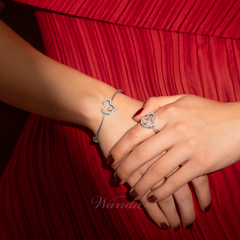 Bangle Wulou white gold 18K dengan inspirasi simbol Wu Lou, melambangkan kesehatan dan kemakmuran. Dihiasi berlian D Color VVS Clarity 0.2 carat dan colorless diamond micro setting untuk sentuhan elegan dan bermakna.