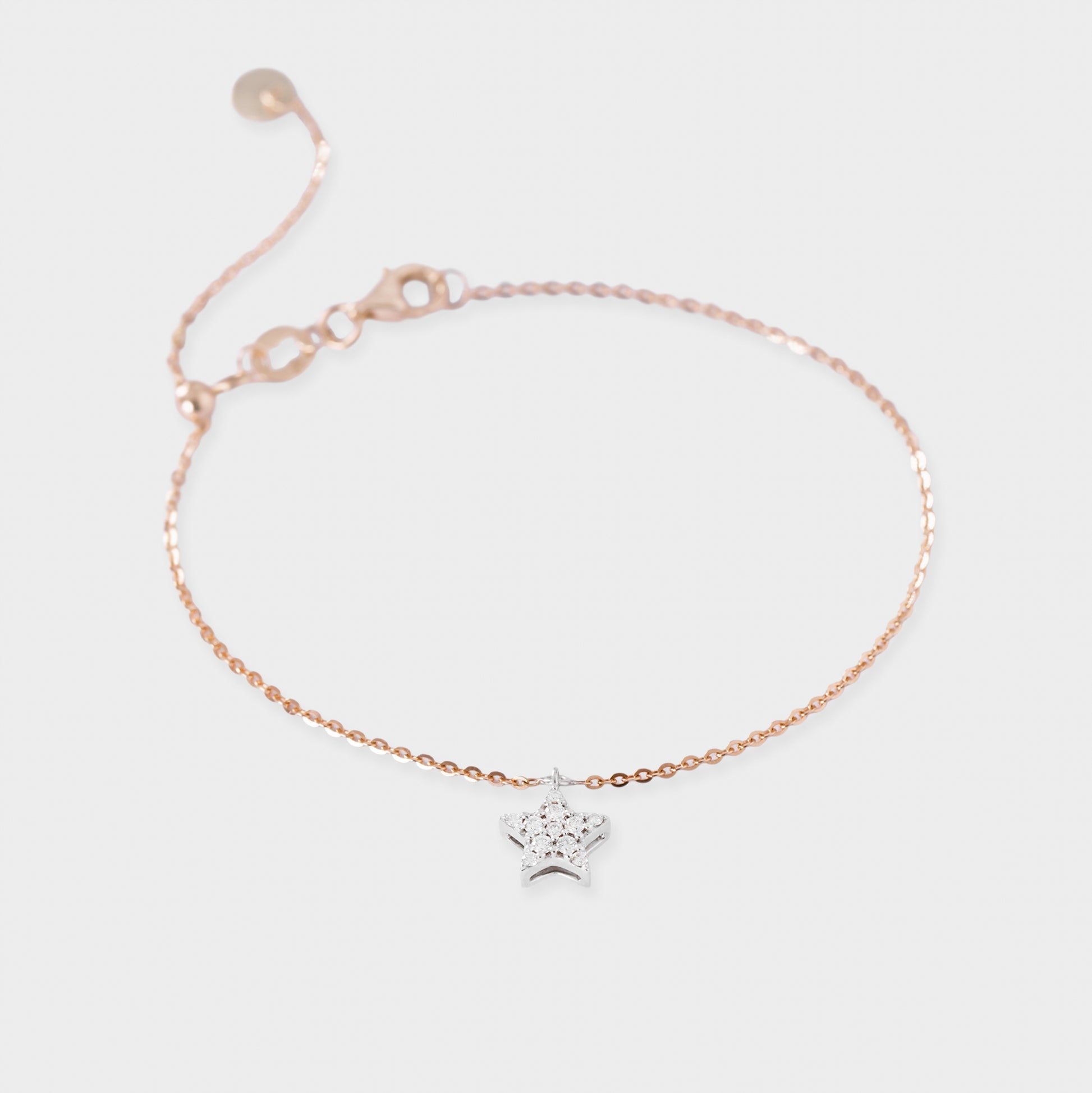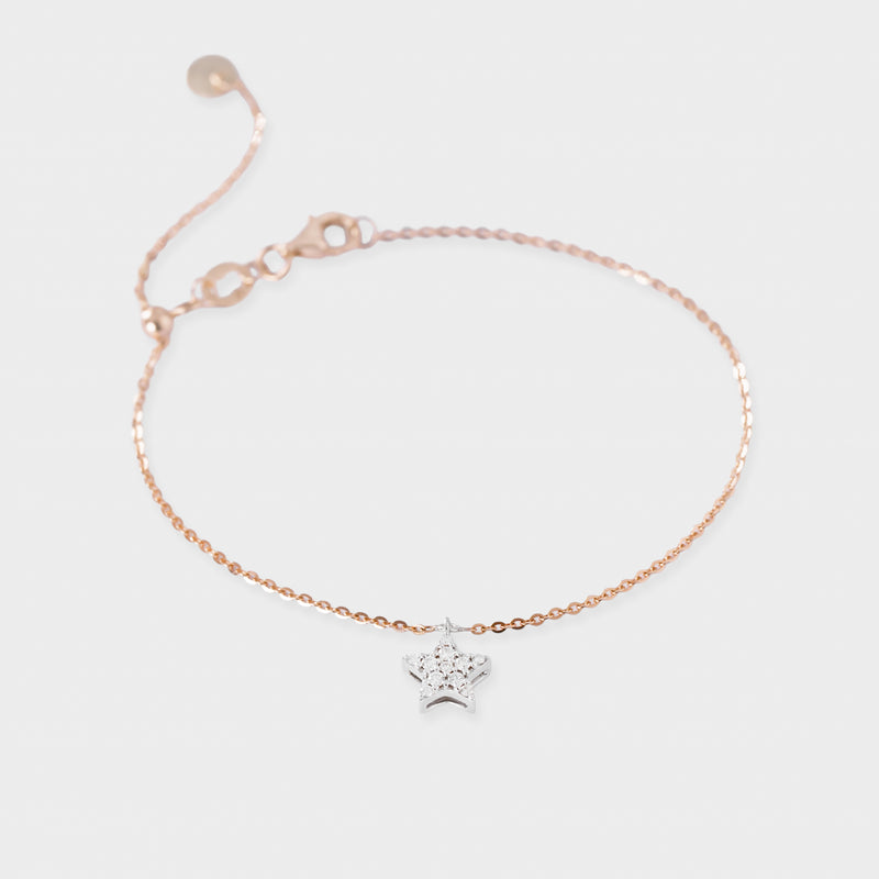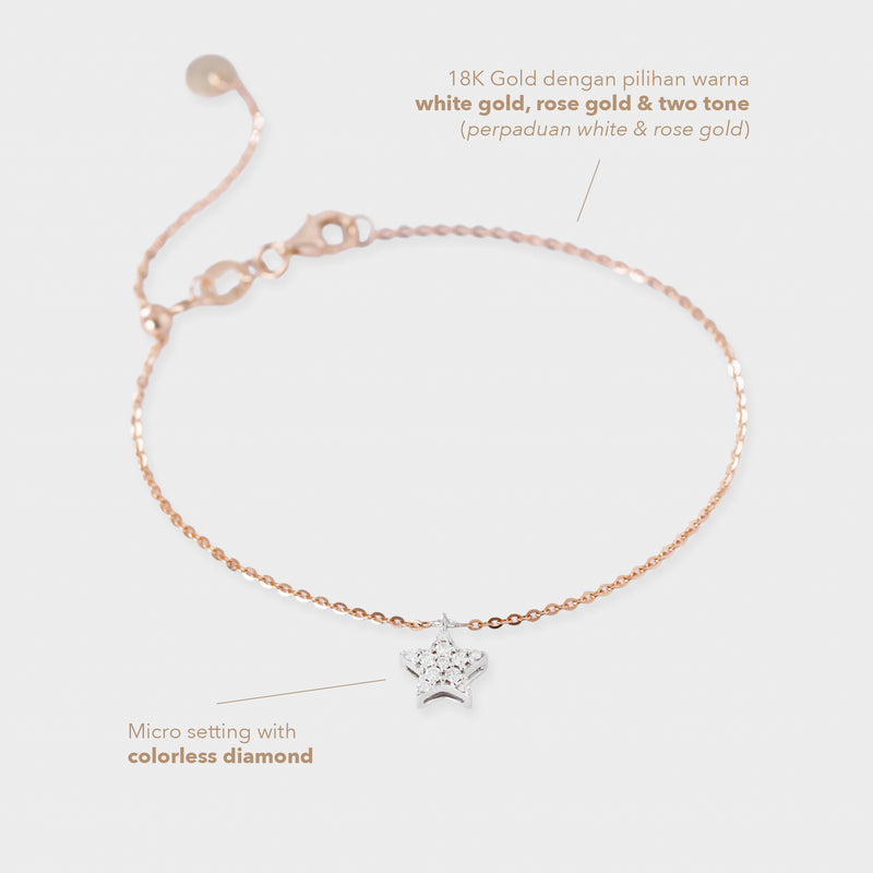 Gelang emas 18K dengan desain bintang yang memikat, dihiasi berlian alami berkualitas tinggi. Simbol keanggunan dan pesona, cocok untuk melengkapi penampilan Anda di berbagai kesempatan.