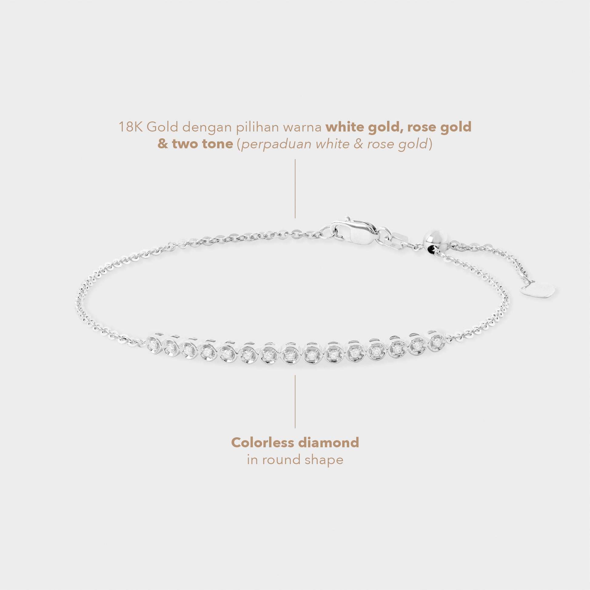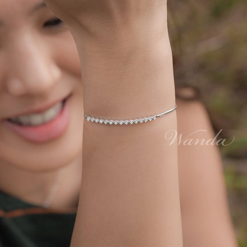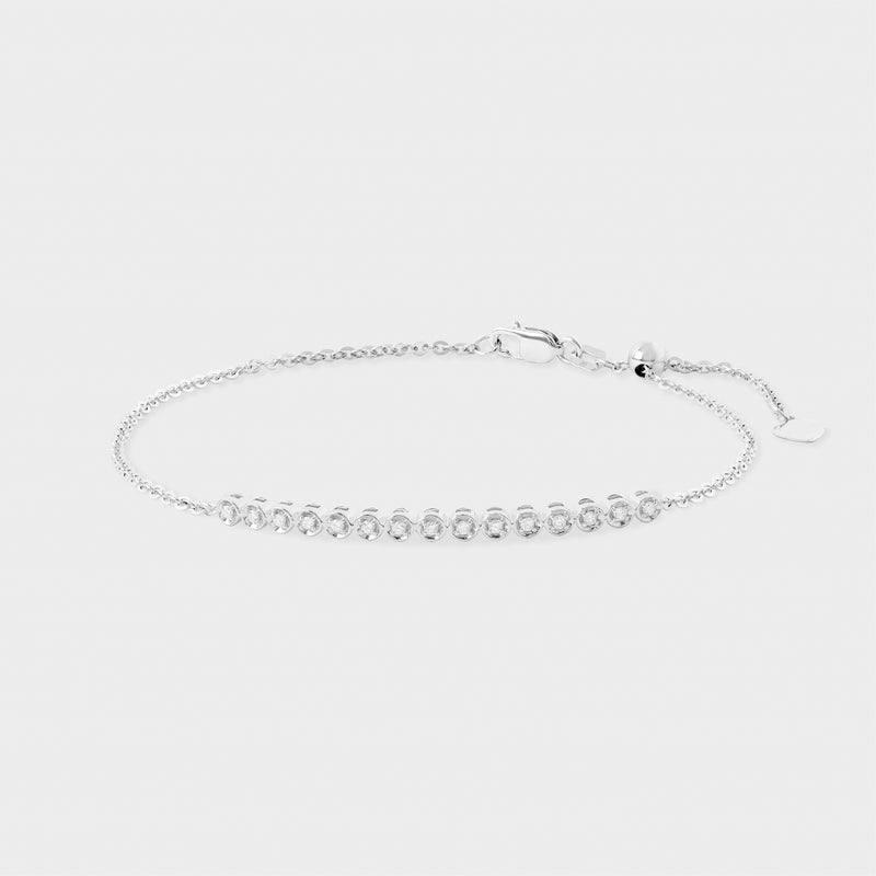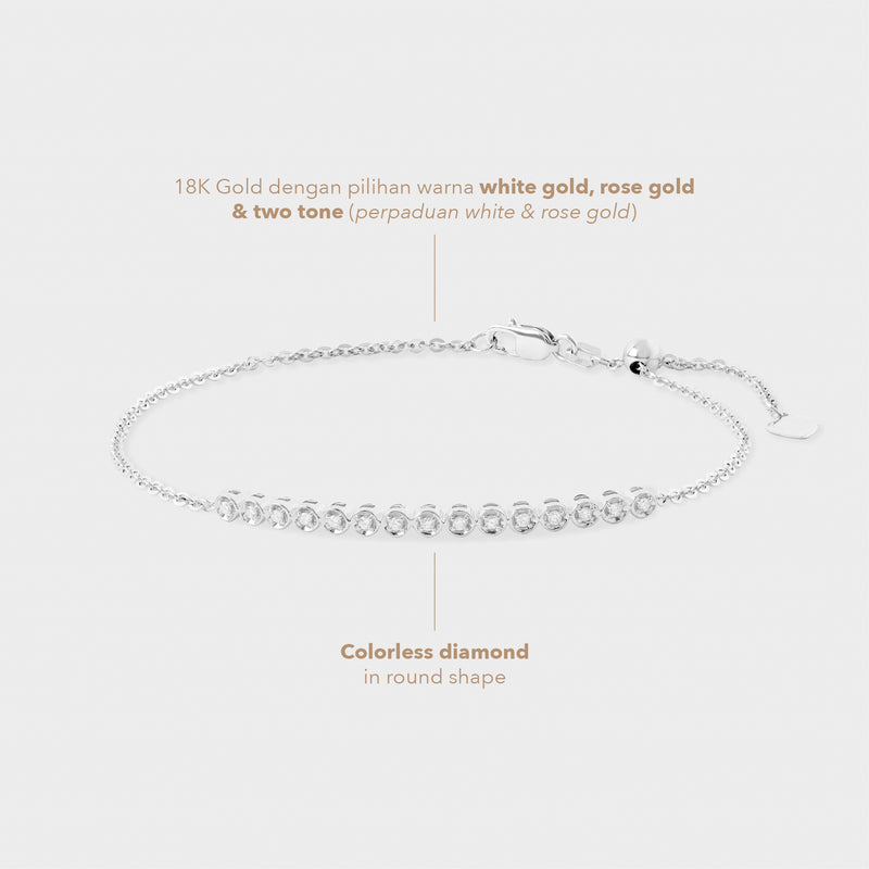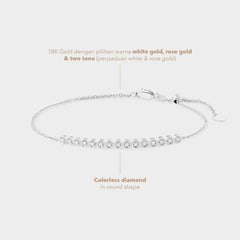 Darya Bracelet menghadirkan desain simpel nan anggun, dihiasi berlian berkilau pada rantai emas 18K. Cocok untuk tampilan kasual hingga formal dengan sentuhan feminin yang halus.