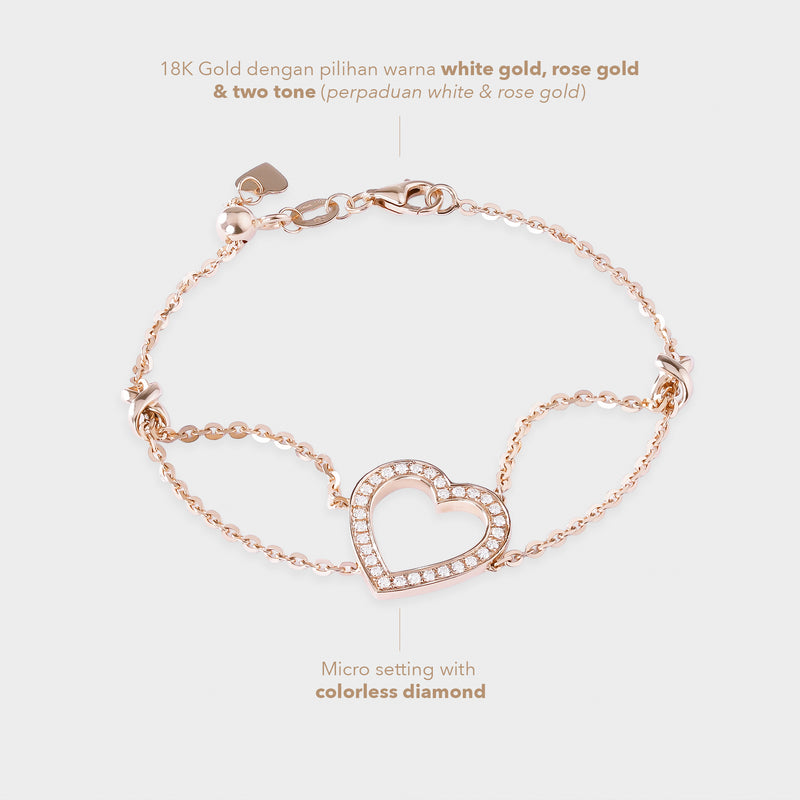 Gelang dengan detail hati yang manis dan feminin. Desainnya simpel namun bermakna, cocok untuk melengkapi tampilan harian atau sebagai hadiah penuh kasih.