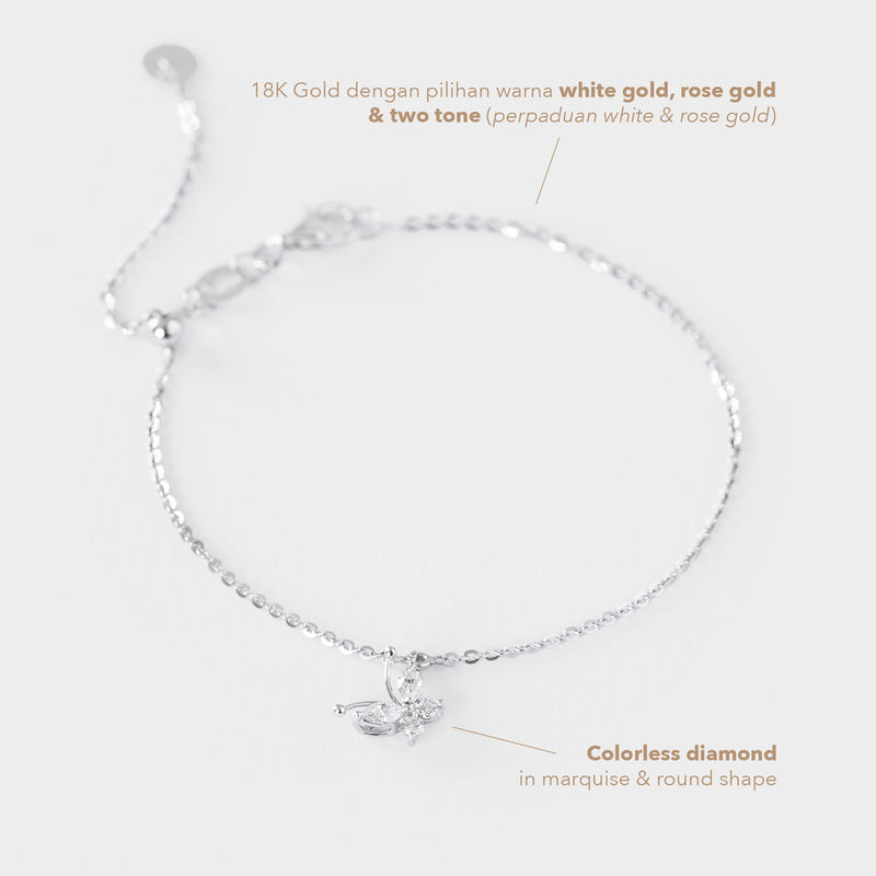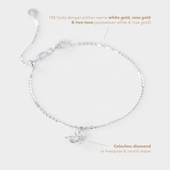 Bracelet Loui adalah gelang emas 18K dengan ukuran yang bisa disesuaikan cocok untuk kamu pakai kapanpun dan dimanapun. perpaduan antara berlian marquise dan round berkualitas tinggi (colorless diamond), gelang ini memancarkan kilau elegan yang menambah pesona pada penampilan kamu.