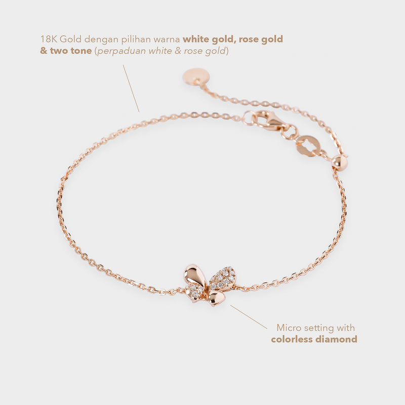 Gelang emas dengan motif kupu-kupu yang manis dan feminin. Desainnya simpel dan elegan, cocok dipakai sendiri atau dilayer untuk gaya yang lebih personal.