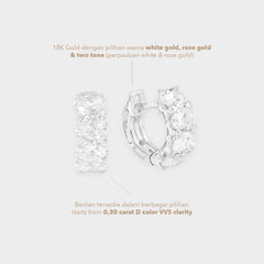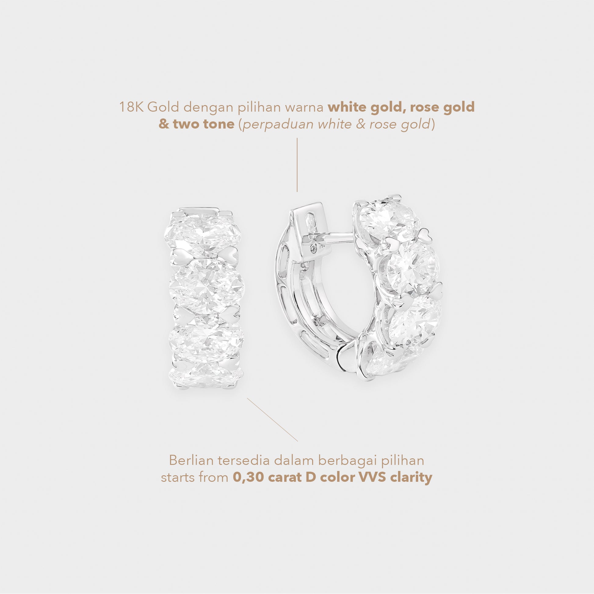 Earrings Electa merupakan anting emas 18K yang menampilkan berlian solitaire alami berbentuk oval dan emerald dengan kualitas D color dan VVS clarity. Tersedia dalam ukuran mulai dari 0,36 hingga 0,52 carat, desainnya yang elegan dan modern menjadikannya pilihan sempurna untuk melengkapi penampilan Anda di berbagai kesempatan.