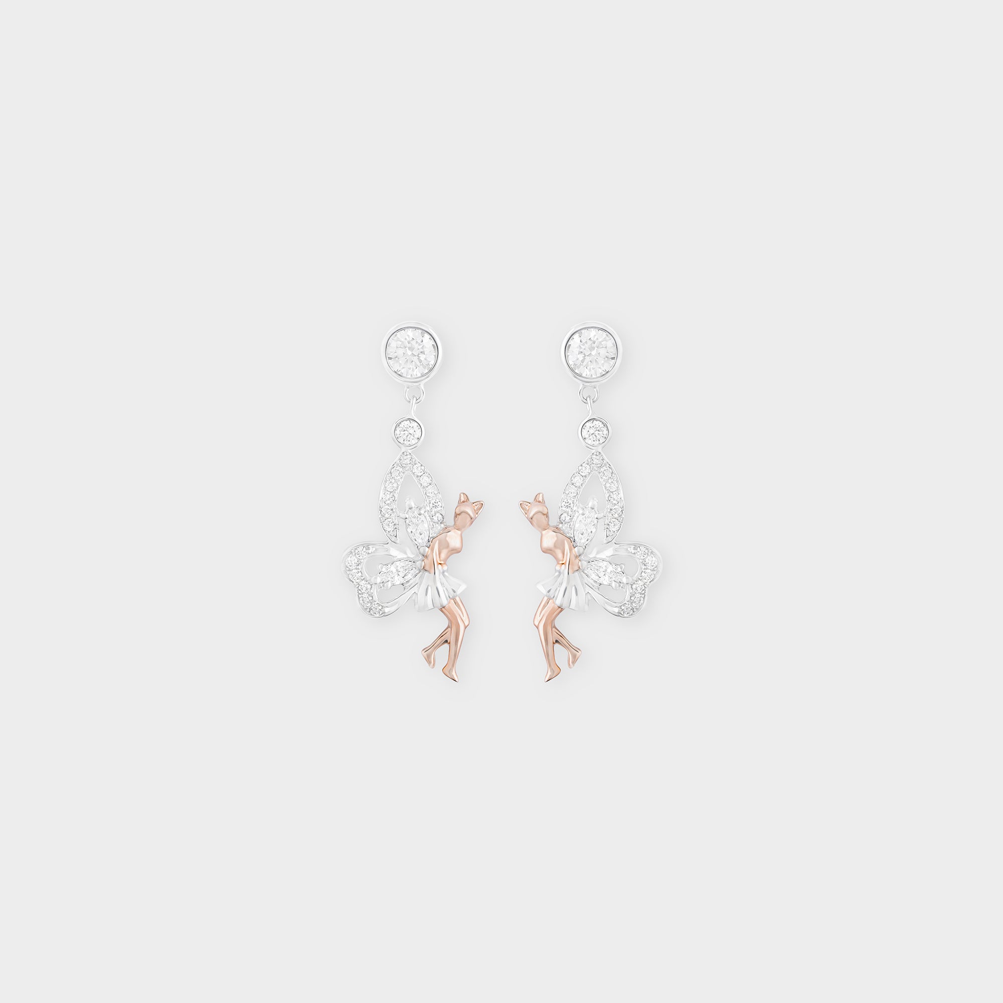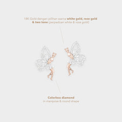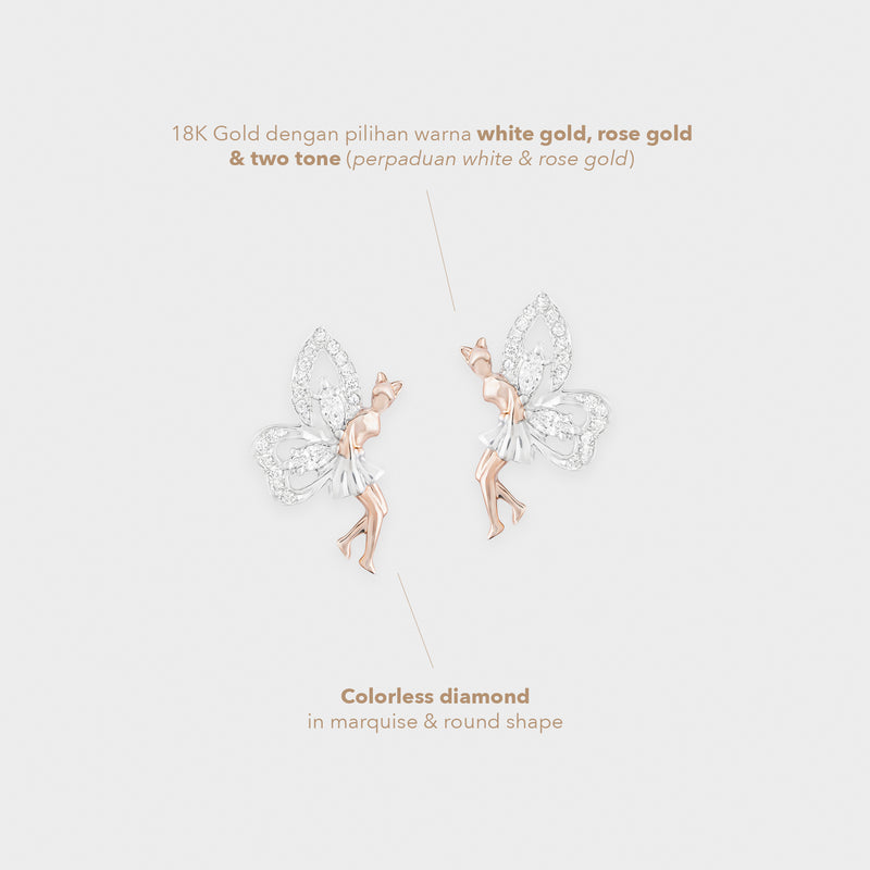 Fairytale Poppy Earrings hadir dalam dua varian: dangle dan stud. Varian dangle dilengkapi round cut diamond 0.24 ct (D Color VVS Clarity), sementara varian stud memakai berlian colorless dengan kejernihan tinggi. Dibalut emas 18K dan dihiasi colorless diamond micro setting, desain bertema fairytale ini tampil anggun dan romantis.