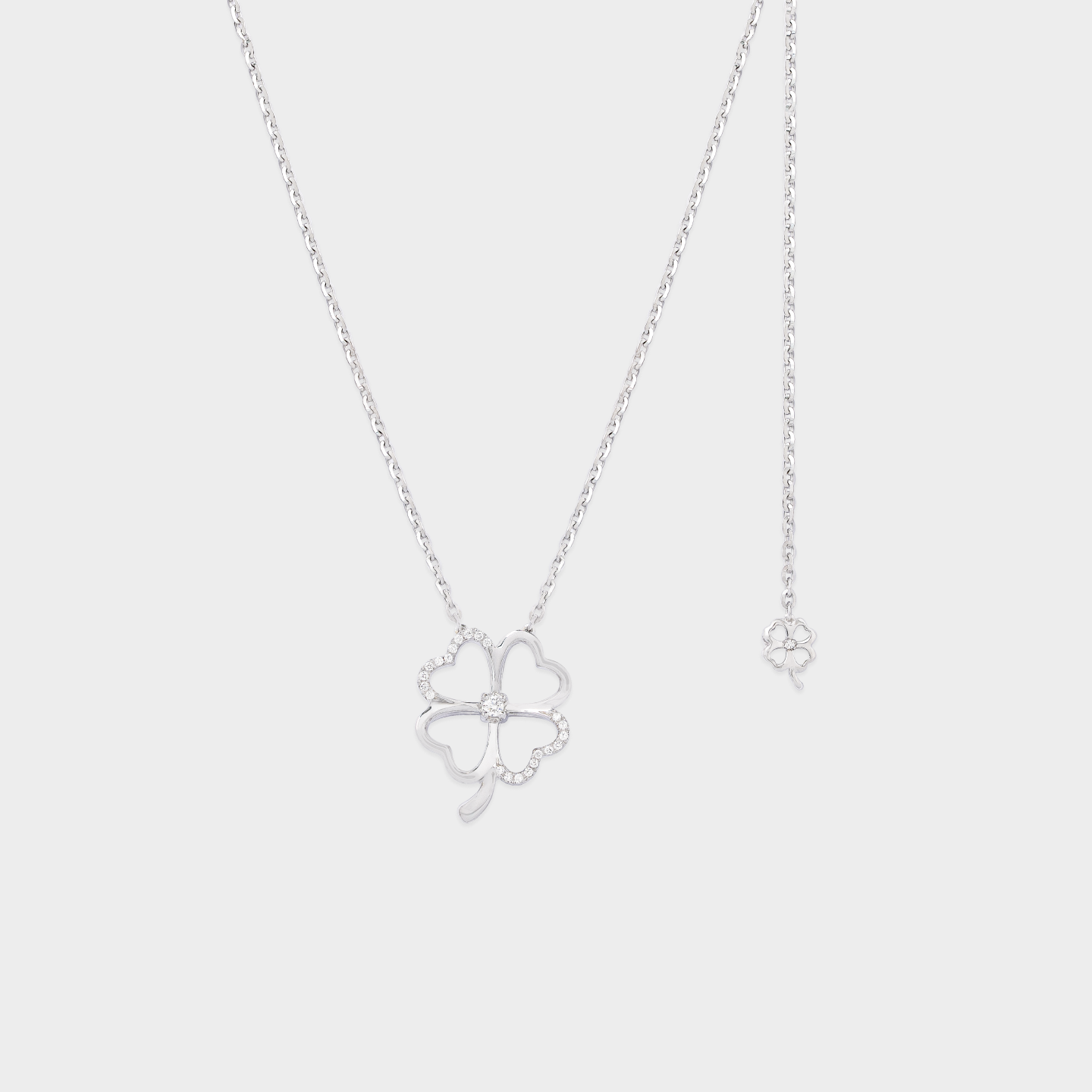 Kalung Clover 5.0 Mini menampilkan desain elegan dengan sentuhan simbol keberuntungan. Dihiasi colorless diamond dan detail mikro setting yang mempercantik tampilan. Terbuat dari emas berkualitas tinggi dan tersedia dalam dua varian warna: white gold dan two tone. Dilengkapi dua pilihan panjang rantai: