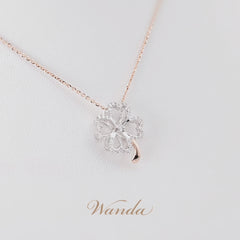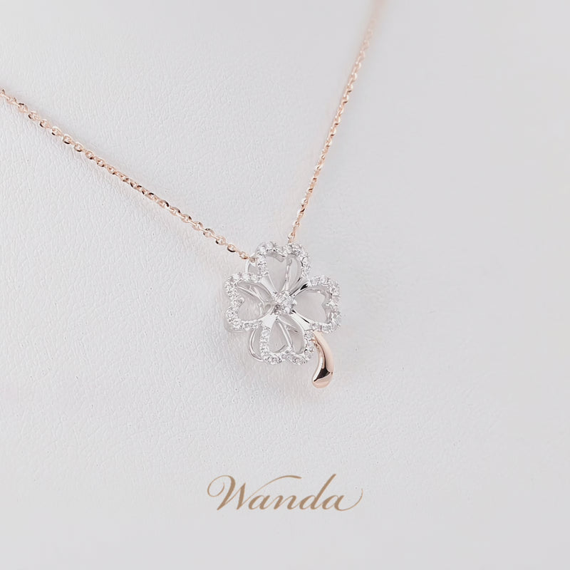 Kalung Clover 2.0 emas 18K two tone dengan empat berlian round cut colorless yang membentuk kelopak clover. Desain simpel dan simbolis ini memadukan keberuntungan dan keanggunan, menjadikannya aksesori elegan untuk tampilan harian maupun spesial.